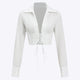 Met de unieke vetersluiting valt dit shirt gegarandeerd op, waar je ook gaat! Het aansluitende ontwerp accentueert je figuur perfect, waardoor je er op je best uitziet. Dit shirt is niet alleen stijlvol, maar ook uiterst veelzijdig en geschikt voor een scala aan gelegenheden – van casual uitjes tot chicere evenementen.
