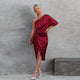 Trek de aandacht in deze schitterende asymmetrische avondjurk, waarvan de elegante split en één schouder op verfijnde wijze de huid onthullen. De vloeiende stof omarmt zachtjes de silhouet en creëert een betoverend contour, terwijl de verfijnde draperingen een luxe effect toevoegen. Deze jurk, beschikbaar in verschillende tinten, is de perfecte keuze voor allerlei evenementen, van elegante recepties tot intieme diners. Ze laat je vrij en comfortabel voelen, terwijl je een ongeëvenaard niveau van stijl behoudt.