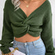Dames Gedraaide Cropped Trui | Met V-Hals en Lange Mouwen | Geribbelde Minimalistische Trui