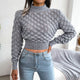Opengewerkte Geribbelde Mock Neck Cropped Trui | Lange Mouwen | Casual Cropped Sweater