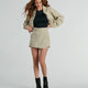 Topkwaliteit functie en mode! Deze twill mini skort laat je een coole en handige stijl belichamen. Deze skort biedt een flatterende hoge taille, een voorste rokoverlay met een cargozak perfect voor cash of kaarten, en een fitted korte zoom zodat je een paar kniehoogte laarzen kunt dragen! Maak de look compleet met de cargo bomberjack voor casual plannen!