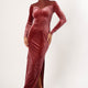 Channel je innerlijke elegantie met onze Jessica Lange Mouw Maxi Jurk in klassieke mauve. Dit sublieme stuk heeft een hoge mesh halslijn voor een lucht van verfijnde aantrekkingskracht, gecombineerd met lange mouwen voor een vleugje traditionele charme. De jurk heeft een voorste splitdetail, wat een moderne twist toevoegt en een hint van huid laat zien.