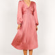 Noelle Twist Front Plissé Midi Jurk - Blush