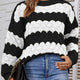 Dames Trui | Gestreept Design met Geribbelde Afwerking | Lange Pasvorm en Verlaagde Schouders
