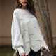 Deze openwork bootneck trui met dolman mouwen en een golvende zoom combineert stijl en comfort. Het opengewerkte ontwerp geeft een verfijnde uitstraling, terwijl de opgerolde hals en losse pasvorm zorgen voor een casual, maar elegante look.
