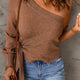 Voeg een moderne touch toe aan je garderobe met deze één-schouder trui met elegante zijstrik en raglanmouwen. Ideaal voor casual of chique gelegenheden.
