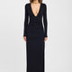 De Solis Maxi Jurk in Zwart combineert een dramatische diepe halslijn met slanke lange mouwen voor een moderne, verfijnde look. Het figuurvolgende silhouet wordt versterkt door geplooide details bij taille en heupen, terwijl de hoge zijsplit beweging en allure toevoegt. Deze maxi jurk is perfect voor avondgelegenheden, formele events en speciale gelegenheden.