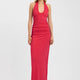De Iris Maxi Jurk combineert een zacht geplooid lijfje met een gestroomlijnd silhouet voor een elegante, moderne look. Gemaakt van gladde, rekbare ribstof, accentueren subtiele plooien rond de taille de vormen voordat de jurk uitloopt in een lange, rechte zoom. De open rug voegt een verfijnde, vrouwelijke touch toe, ideaal voor avondgelegenheden of stijlvolle dagoutfits.