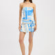 De Meadow Wrap Mini Jurk combineert een strapless halslijn met een flatterend wrap-strikdetail bij de heup voor een vrouwelijk silhouet. De geometrische streepprint in blauwe en neutrale tinten en subtiele gerimpelde details voegen textuur en visuele interesse toe. De mini-lengte zorgt voor een frisse, moderne uitstraling, perfect voor zomerse dagen, feestjes of casual evenementen.
