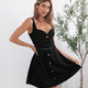 Omhuld in casual elegantie, de Kyveli jurk in zwart is perfect voor een verfijnde, vrouwelijke look. Het model heeft brede bandjes, een sweetheart halslijn en knopen aan de voorkant voor subtiele details. De tailleband en A-lijn rok met mini-lengte zoom zorgen voor een flatterende pasvorm. Combineer met gouden statement oorbellen voor een vleugje glamour. Ook beschikbaar in geel voor meer keuze.