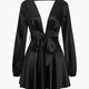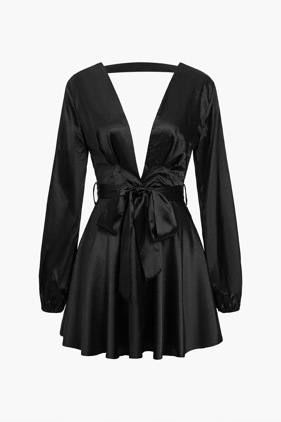 Satin Rugloze Ceintuur V-hals Mini Jurk